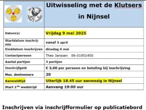09mei19:00Uitwisseling De Klutsers in Niijnsel